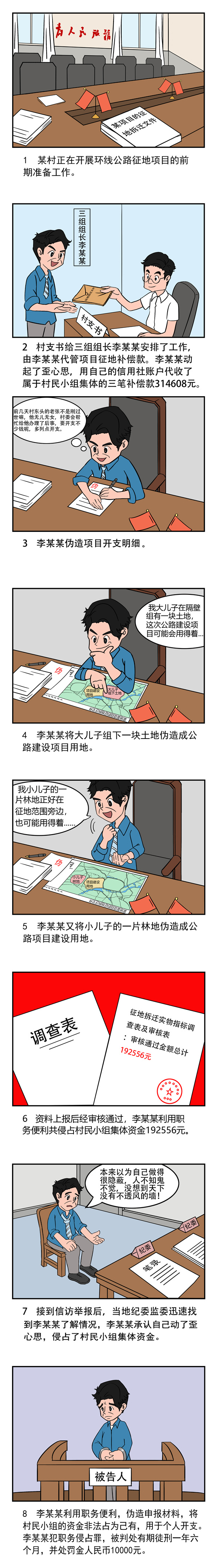掌握相关线索后,当地纪检监察机关介入调查,随后将李某某违法犯罪事实移送检察机关审查起诉。经法院审判,李某某因犯职务侵占罪被判处有期徒刑一年六个月,并处罚金人民币10000元。