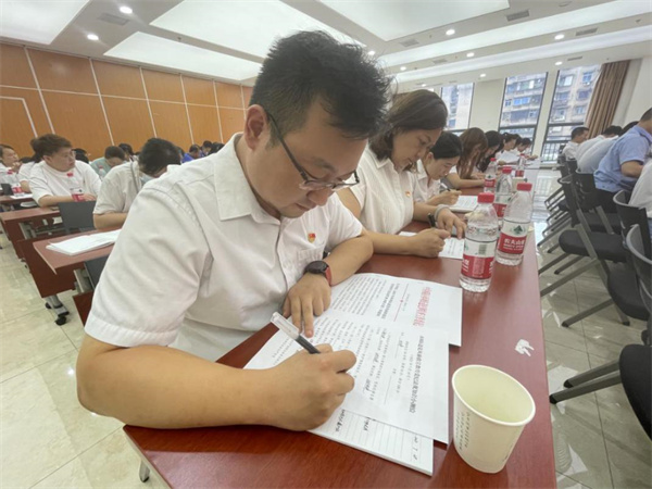 “考”出精气神。常态化开展应知应会党内法规知识测试,教育引导全区党员干部和公职人员知敬畏、存戒惧、守底线。图为该区西坝街道纪工委组织机关干部、社区“两委”及财务等重点岗位工作人员进行党纪法规测试。