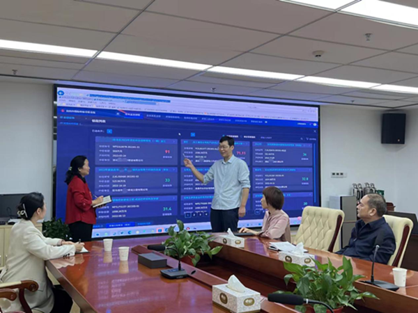 图为宜昌市纪委监委驻市政府办纪检监察组联合市公共资源交易监督管理局对围标串标分析系统的应用情况开展监督检查,通过平台数据比对,排查疑似问题线索。