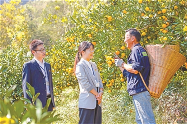 湖北省长阳土家族自治县纪委监委聚焦惠农政策落实、补助资金发放等环节,下沉一线开展监督检查,严查群众身边的腐败和不正之风。图为近日,该县纪检监察干部在高家堰镇柑橘种植基地走访了解情况。唐强 摄