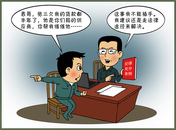 答:老李,那我劝你可要谨慎点啊。市场经济是法治经济、竞争经济、信用经济。我们党员干部都要谨慎行使手中的权力,即使面对亲戚经济纠纷这样的事情,也要通过正常的法律途径寻求解决和帮助,不能利用职权或职务上的影响,干预和插手经济纠纷。否则,就可能不是帮助亲戚,连自己也可能受到处分。根据《中国共产党纪律处分条例》第一百二十六条规定,党员领导干部违反有关规定干预和插手市场经济活动,如果造成不良影响的,可能给予党纪处分。