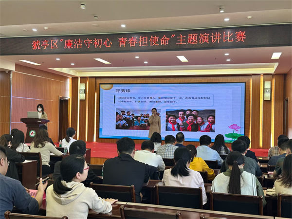 图为猇亭区纪委监委和区委组织部联合举办“廉洁守初心 青春担使命”主题演讲比赛