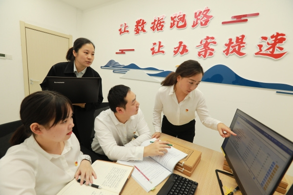 湖北省宜昌市纪委监委注重将大数据手段运用到线索处置、档案管理、审查调查、物证提取、现场勘验等业务环节,着力让数据跑路、办案提速。图为近日,该市点军区纪检监察干部通过监督信息化平台对相关数据进行比对分析。唐强 摄