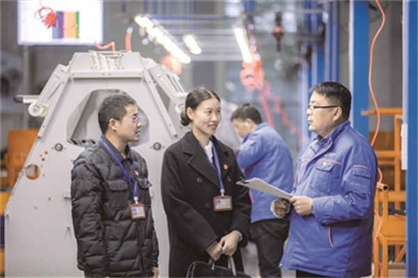 湖北省宜昌市纪检监察机关组织力量深入企业、项目一线,聚焦惠企政策落实情况开展监督检查,推动营商环境持续优化。图为近日,该市伍家岗区纪检监察干部在企业生产一线了解情况。唐强 摄