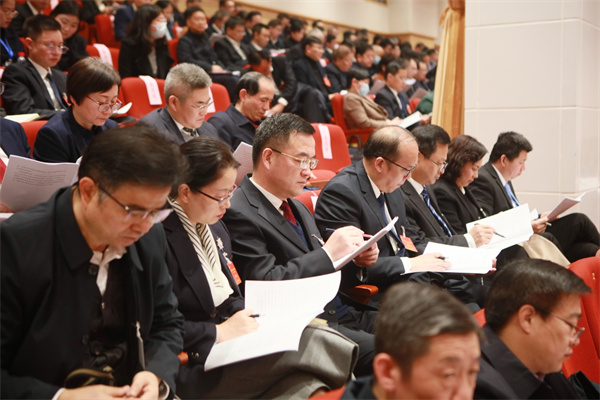 图为与会人员认真聆听全会工作报告。