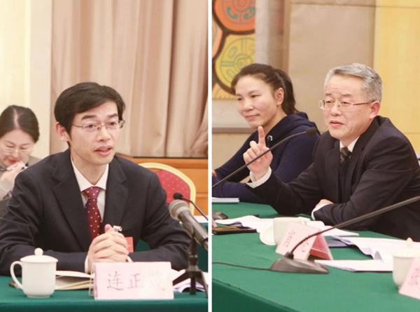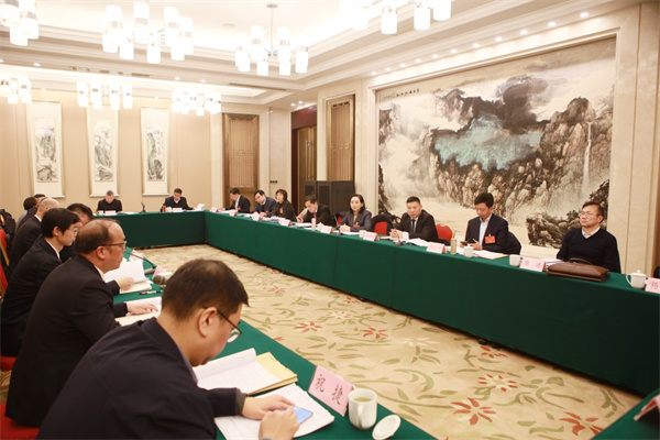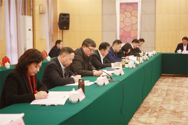 图为与会人员就学习省委主要领导的讲话和全会工作报告进行交流发言。