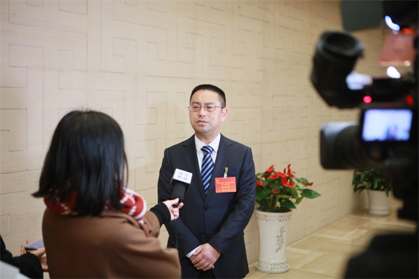 图为会议期间,与会人员接受媒体访谈。