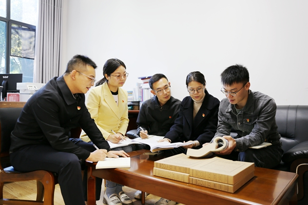 五峰土家族自治县纪委监委第二协作区年轻干部正在开展业务研讨交流。