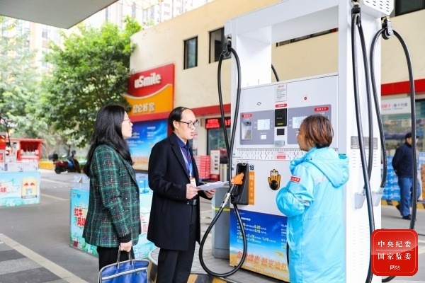 重庆市南岸区纪委监委组建专项监督检查组,聚焦公车领域易发多发的“四风”问题,对重点场所、重要领域和关键环节开展专项监督检查,持续巩固作风建设成效。图为该区检查组成员到加油站了解相关情况。(重庆市南岸区纪委监委 陈佳佳 摄)