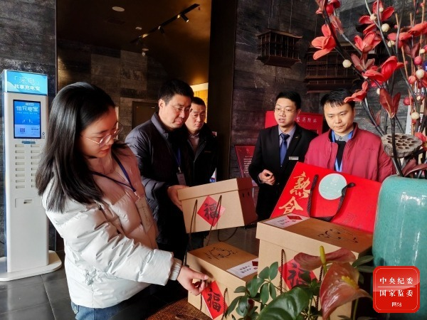 河南省洛阳市涧西区纪委监委紧盯不吃公款吃老板、躲进隐蔽场所吃喝等问题开展明察暗访,深挖细查隐形变异“四风”问题线索。图为该区纪检监察干部在辖区饭店了解节礼预订情况。(河南省洛阳市涧西区纪委监委 张颖 摄)