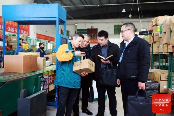 江西省兴国县纪委监委紧盯“隔空送礼”等隐形变异“四风”问题,以商超寄件信息、快递驿站收取件为突破口,筛查相关信息。图为该县纪检监察干部在邮政快递点排查可疑情况。(江西省兴国县纪委监委 饶蓓 摄)