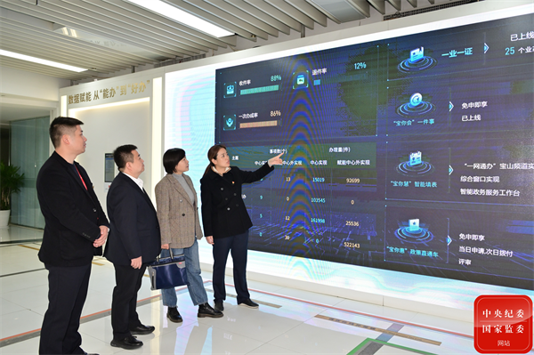 上海市宝山区纪委监委探索数字赋能智慧监督,会同职能部门运用税控发票系统、公务用车监控平台、“一网通办”数据分析模块等强化监督检查,深化整治违规吃喝、公车私用等“四风”问题。图为该区纪检监察干部在区行政服务中心开展节前专项检查。(上海市宝山区纪委监委 王晓云 摄)