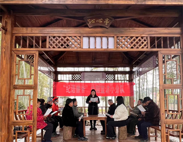 以讲传廉、以讲促廉。咸宁市纪检监察系统女干部组成“‘纪语廉音’巾帼宣讲小分队”,深入党群、村组等基层一线,向基层党员、纪检委员、村组干部宣讲纪法知识、家风家训以及廉洁小故事,推动基层形成崇廉尚洁的良好风尚。图为该市咸安区官埠桥镇纪委女干部在该镇河背村5组为附近党员宣讲新修订的《中国共产党纪律处分条例》。