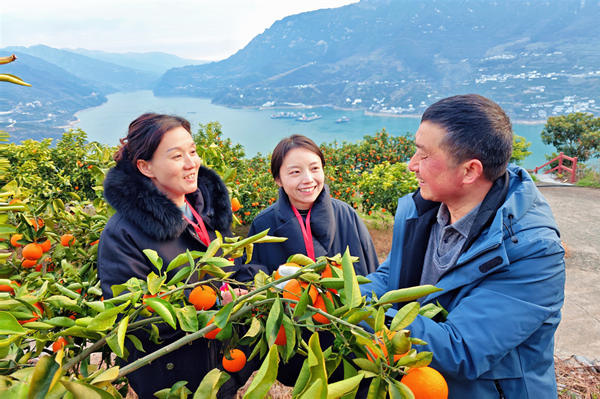 靠前监督,贴身监督。宜昌市纪检监察系统女干部持续发扬“大脚板”作风,深入一线了解产业发展情况,强化基层监督助力乡村振兴。她们深入田间地头,对各项惠农政策落实情况开展监督检查,找准摸清群众在生产经营中的“急难愁盼”问题,杜绝形式主义、官僚主义以及吃拿卡要等违纪违法问题发生。图为该市秭归县纪委监委女干部走进屈原镇长江村,实地向脐橙种植户了解生产销售及相关部门履职情况。