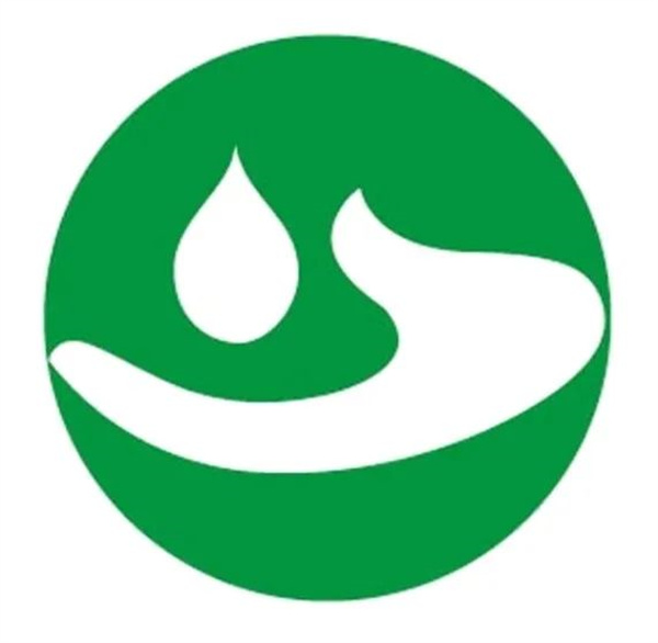 手托起一滴水,寓意为节水,表示鼓励人们从我做起,人人动手节约每一滴水。