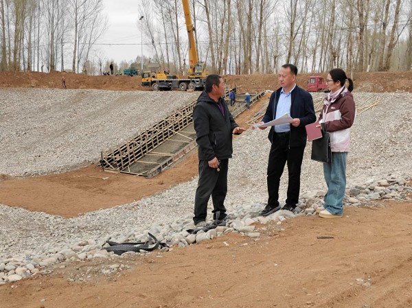 甘肃省临泽县纪委监委聚焦高标准农田规划建设问题专项治理工作,强化监督检查。图为该县板桥镇纪委工作人员在古城村高标准农田项目建设现场走访了解情况。孙文乾 摄