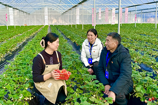 湖北省宜昌市伍家岗区纪委监委设置村(社区)廉情监督员,建立“收集+处置+反馈”廉情信息闭环处置机制,有效解决基层力量薄弱、监督乏力等问题。图为近日,该区伍家乡廉情监督员在南湾村草莓基地向群众了解有关情况。杨少贵 摄