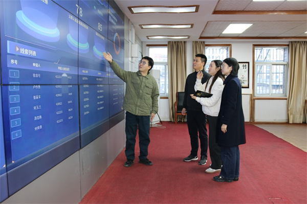 以信息化助力案件查办。鄂州市纪委监委持续推动数字技术与纪检监察工作深度融合,将大数据手段嵌入线索处置、审查调查、物证提取、现场勘验等案件查办全流程、各环节,注重总结各类违纪违法行为所对应的数据规律和数据分析排查方法,形成优秀技战法和分析研判工具,打造“数据+战法+工具”的智慧办案模式,助力案件查办实现新突破。图为该市纪委监委专案组运用大数据手段推演分析案情。