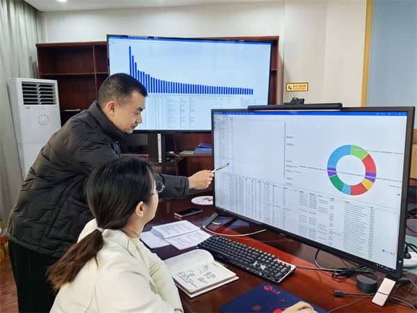以大数据赋能精准监督。孝感市纪委监委紧盯被监督部门权力运行的关键点和风险点,建立涵盖民政、医保、教育、乡村振兴等14个重点领域的大数据监督模型,通过筛选数据、比对分析、触发异常、研判存疑,精准筛选可查性较强的问题线索,实现让数据说话、线索上门,助力提升监督治理效能。图为大悟县监督检查专班运用大数据监督模型分析疑点数据。