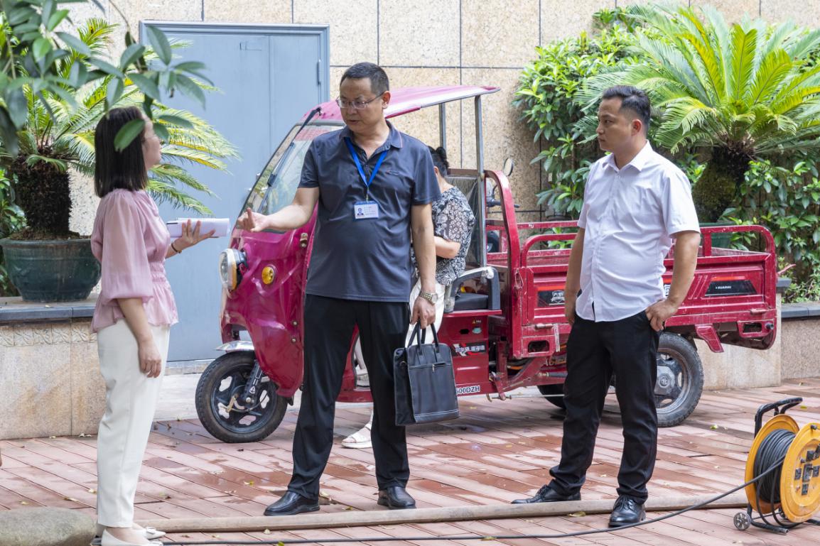 夷陵区纪委监委通过实地走访检查,督促住建部门落实相关工作责任,切实做好各考点周边高考期间暂停施工、静音降噪、道路畅通等保障工作,为考生营造安静安全的应考环境。图为该区第五派出纪检监察组在某考点附近施工现场进行监督检查。