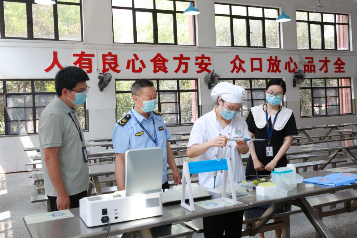 远安县纪委监委立足“监督的再监督”职责定位,督促县市场监督管理局认真履职尽责,对考点学校食堂、考点内商店和超市、周边餐饮服务单位等重点场所进行“地毯式”排查,确保高考师生饮食安全。图为该县纪检监察干部到考点食堂进行监督检查,督促县市场监督管理局严格落实食品安全监管责任。