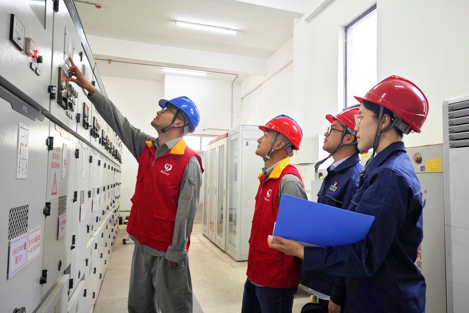 宜都市纪委监委深化地企协作,联合国网宜都市供电公司纪委开展高考保供电专项监督,对高考供电各环节工作开展全面检查,对发现的问题隐患督促及时整改到位,保障高考期间用电安全稳定。图为国网宜都市供电公司纪委工作人员在某考点中学配电房了解检修维护工作及责任落实情况。