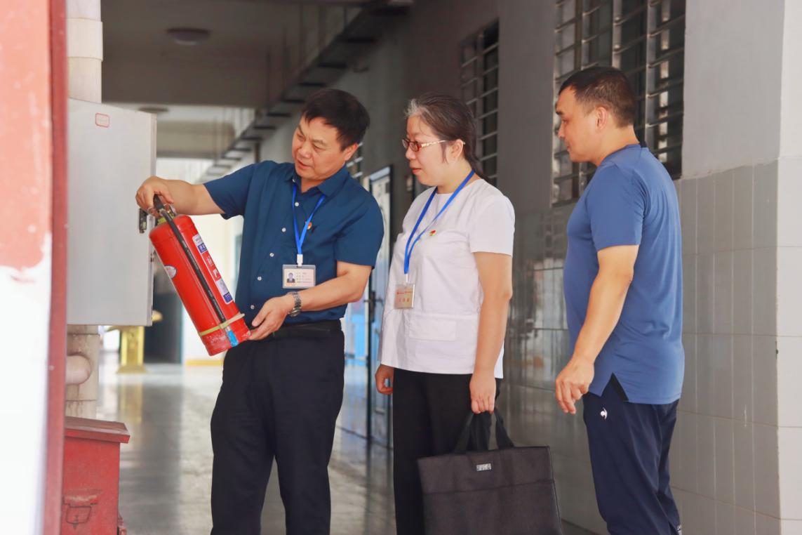 当阳市纪委监委深入各考点,通过查阅应急预案、检查消防设施、查看维护记录等方式,压紧压实相关部门主体责任,督促及时排查消除考点安全隐患,确保高考平安有序。图为该市纪检监察干部在某中学对消防安全措施及责任落实情况进行检查。