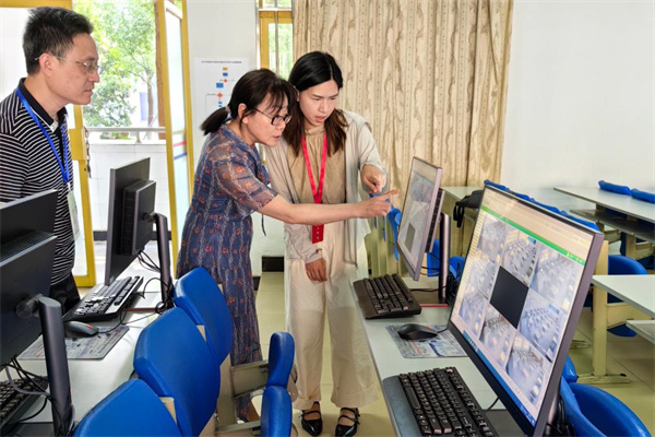 枝江市纪委监委闻令而动,将监督“探头”前置,紧盯重点环节、关键部位,聚焦监考人员履职、电子监控系统运行等关键环节跟进监督,主动出击、排查风险,全力营造公平公正考试氛围。图为该市纪检监察干部在某学校视频中控台实地查看,了解考场视频监控系统运行情况。