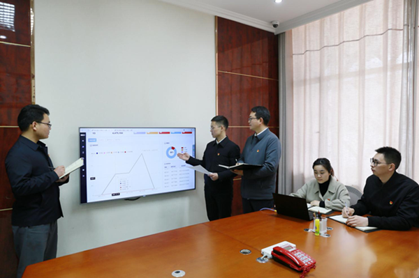 点军区纪委监委聚焦重点领域打造数字化应用场景,紧盯职务犯罪案件自主探索数字监督技战法,推动信息化同纪检监察业务工作深度融合。图为该区纪检监察干部在办案过程中运用数据分析系统进行可疑数据分析比对。