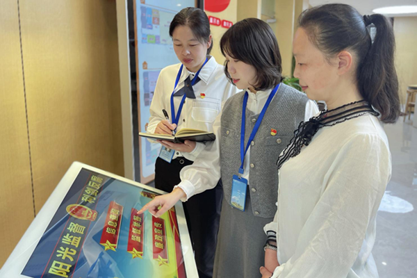 伍家岗区纪委监委通过打造“阳光监督”数字平台,将监督事项、监督渠道、权责流程等“晒”在阳光下,实现精准监督。图为该区沈家店社区纪委书记在引导居民使用数字监督平台。
