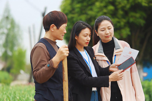 当阳市纪委监委以信访举报平台大数据为支撑,有效链接信访举报数据分析平台,打造“数据统计+专题分析+领域分析+典型筛选”的综合立体分析模式,推动解决群众“急难愁盼”问题。图为该市纪检监察干部在两河镇新星村向群众介绍纪检监察网络举报平台。(宜昌市纪委监委)