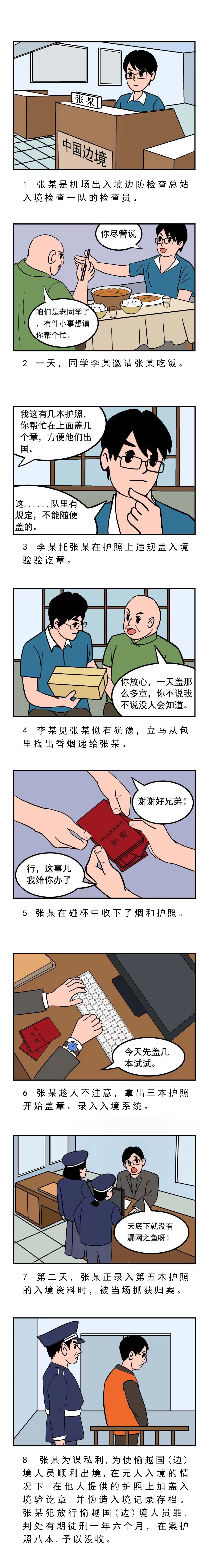 张某犯放行偷越国(边)境人员罪,判处有期徒刑一年六个月;在案护照八本,予以没收。