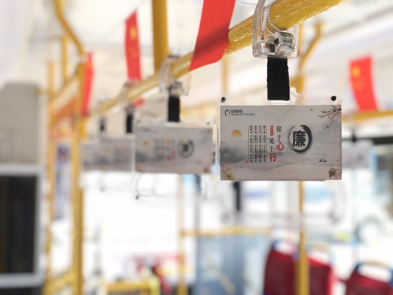 图为长阳城市公交集团有限公司打造清廉专线内部拉环场景