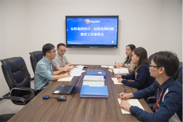 强化系统思维,形成办案合力。安琪集团纪委、监察专员办公室加强与公司审计、财务等部门的协同配合,健全共商研判、联合监督、问题移送、成果共享机制,更精准发现问题,形成震慑。图为该企业纪检监察机构组织召开联席会议研判问题线索。
