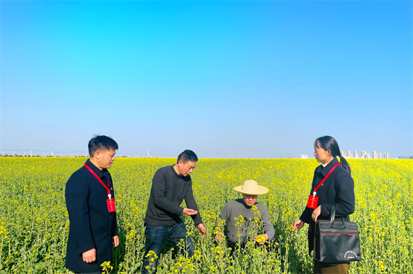 联动监督聚合力。枝江市纪委监委以“室组地”联动模式深入田间地头,围绕春耕生产、农资供应、惠农惠民资金落实情况开展监督检查,以强有力的监督护航春耕备耕,确保春耕备耕各项政策措施落地见效。图为该市纪检监察组干部和农业农村局技术人员在仙女镇实地查看油菜种植物资供应相关情况。