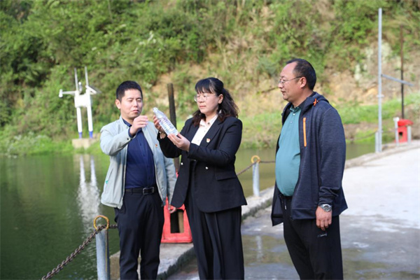 加强跟进监督,提升环保治理效能。夷陵区纪委监委联合该区环保部门对生态环境保护重点工作、薄弱环节跟进监督,以铁纪守护绿水青山。图为近日,该区纪检监察干部在邓村乡黄金河三级站水库了解水库水质相关情况。