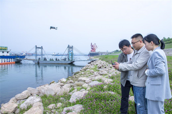 开展智慧监督,推动环境质量稳步提升。猇亭区纪委监委紧盯流域治理、生态环保重点项目,联合职能部门、加强“室组地”“纪巡审”联动开展不定期智慧巡查。图为该区纪委监委联合市生态环境局猇亭分局工作人员在红溪港至全通码头段通过无人机开展沿江水环境质量巡查,排查明显水污染源。