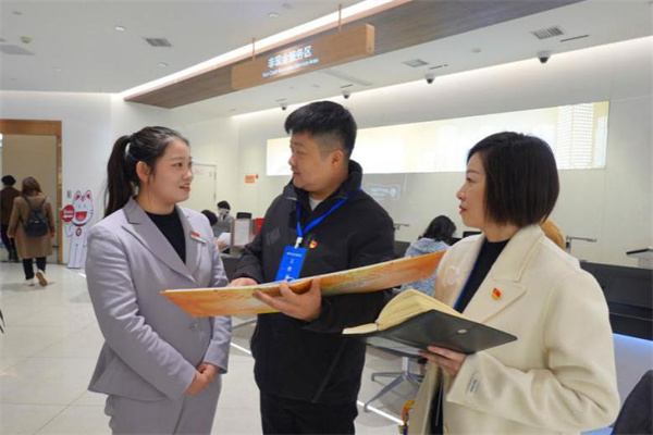 图为西陵区纪检监察干部会同金融、政务服务等部门走访银行了解企业融资支持情况