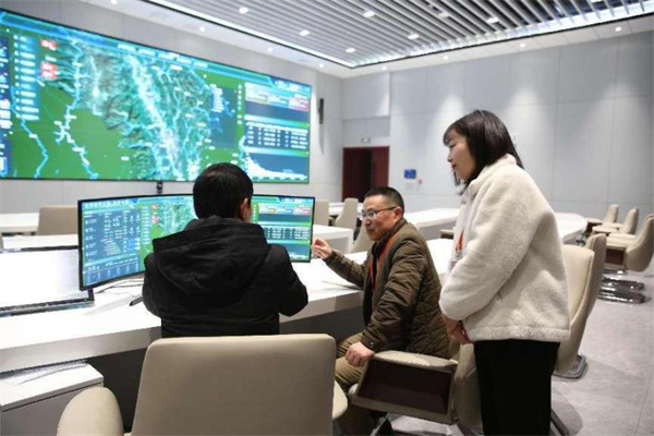 图为远安县纪检监察干部运用“城市大脑”了解县内流域综合治理情况