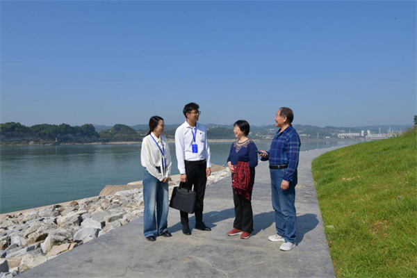 图为西陵区年轻纪检监察干部深入西坝岛生态修复工程现场实地走访