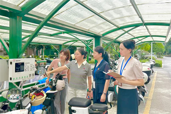 “边巡边改”见实效。伍家岗区探索建立对村(社区)巡察整改全周期管理机制,推动建立反馈、督导、销号的工作闭环,对巡察整改情况实行台账管理、照单推进、销号清零,常态化开展“回头看”,确保巡察反馈问题全部整改销号。图为该区第二巡察组在伍家乡月亮湾小区了解小区充电棚整改情况。(宜昌市纪委监委)