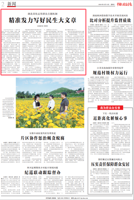 习近平总书记在二十届中央纪委三次全会上强调,惩治“蝇贪蚁腐”,让群众有更多获得感。中央纪委国家监委部署开展群众身边不正之风和腐败问题集中整治以来,湖北省纪委监委坚持因地制宜、“小切口”发力,推动办成了一批民生实事。