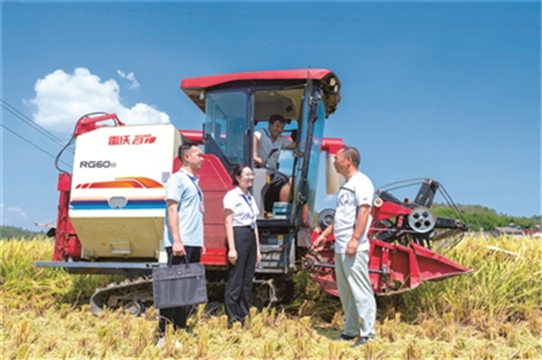 湖北省宜昌市夷陵区纪委监委紧盯惠农政策落实、涉农补助资金发放、粮食购销等关键环节,组织纪检监察干部深入田间地头、群众家中走访,全力护航秋收生产。图为近日,该区纪检监察干部在分乡镇南垭村了解职能部门履职情况。聂爽 摄