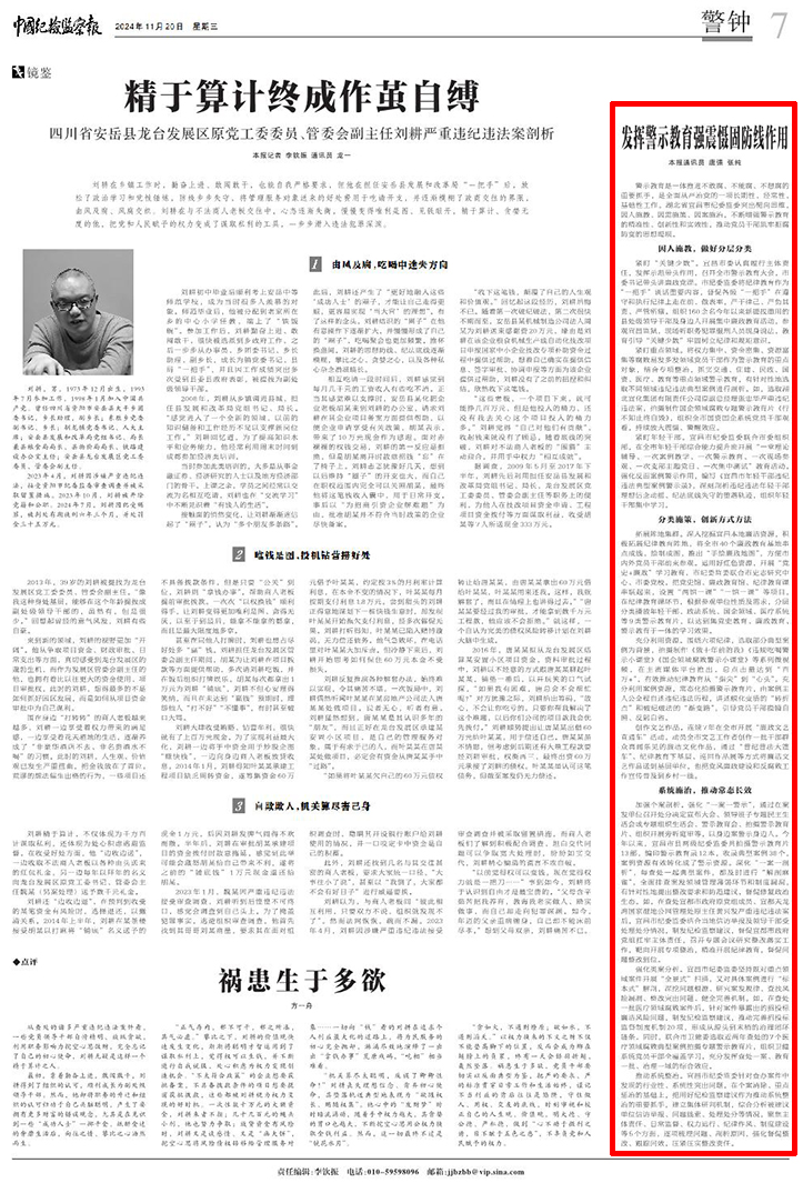 编辑:黄敏 发布时间 : 2024-11-20 来源 : 中国纪检监察报