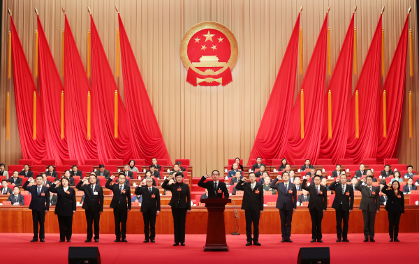 随后举行宪法宣誓仪式。新当选人员向宪法郑重宣誓。