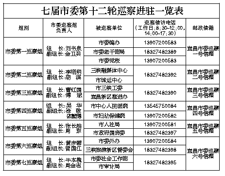 根据市委关于巡察工作的统一部署,截至3月31日,七届市委第十二轮巡察完成进驻工作。市委巡察组将对15家市直单位开展常规巡察,同步开展选人用人、落实意识形态工作责任制专项检查。
