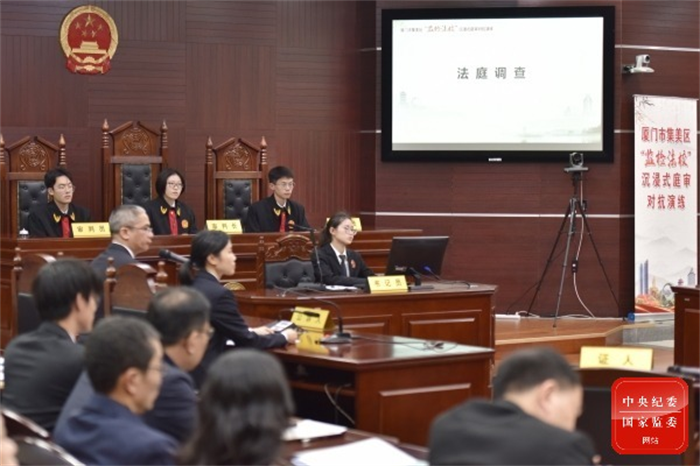 近日,福建省厦门市集美区纪委监委牵头举办“监检法校”沉浸式庭审对抗演练,选取一起典型的投资入股型受贿案件进行改编,开展模拟庭审,在同堂培训提升职务犯罪案件办理能力的同时,教育引导党员干部、高校师生以案为鉴,筑牢拒腐防变的思想防线。(福建省厦门市集美区纪委监委 李松荣 摄)