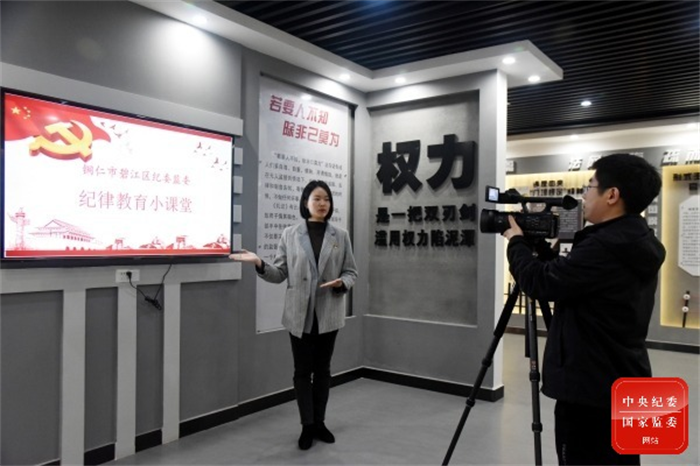 贵州省铜仁市碧江区纪委监委常态化开展党规党纪教育,创新教育形式,通过拍摄制作廉政短视频、纪律教育“小课堂”等,教育引导党员干部牢固树立纪律意识。图为碧江区纪委监委干部正在录制纪律教育“小课堂”。(贵州省铜仁市碧江区纪委监委 韩聪 摄)