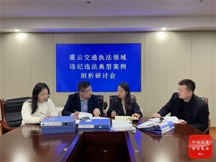 江苏省灌云县纪委监委将同级同类干部警示教育作为一体推进不敢腐、不能腐、不想腐的重要抓手,坚持类案共性分析、个案深度剖析,用好典型案例,查找系统领域腐败共性和个性问题,精准聚焦、有的放矢,实现“查处一案、教育一片、治理一方”的效果。图为该县纪委监委办案人员剖析研讨交通执法领域违纪违法典型案例。(江苏省灌云县纪委监委 郑泽刚 摄)