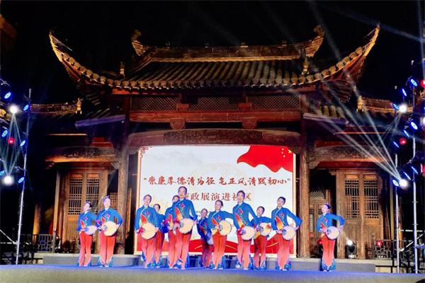 文艺“话”廉。宜都市纪委监委将廉洁文化融入文艺演出、方言俚语、剪纸手绘,以群众看得见、听得懂、喜闻乐见的方式开展“送廉下乡”活动,全面提升廉洁文化的感染力、影响力。图为该市陆城街道红春社区举办廉政文艺晚会。